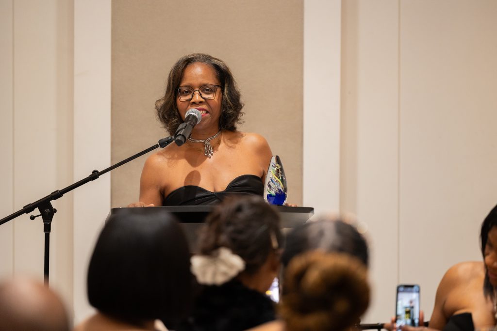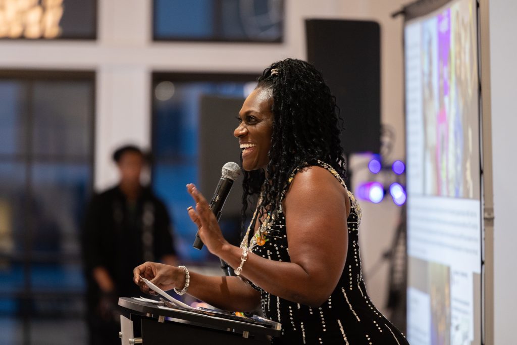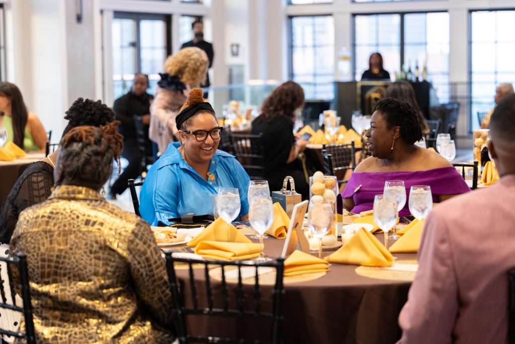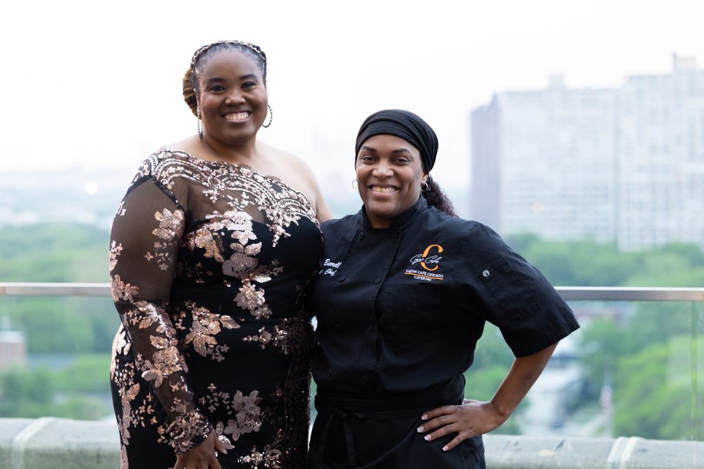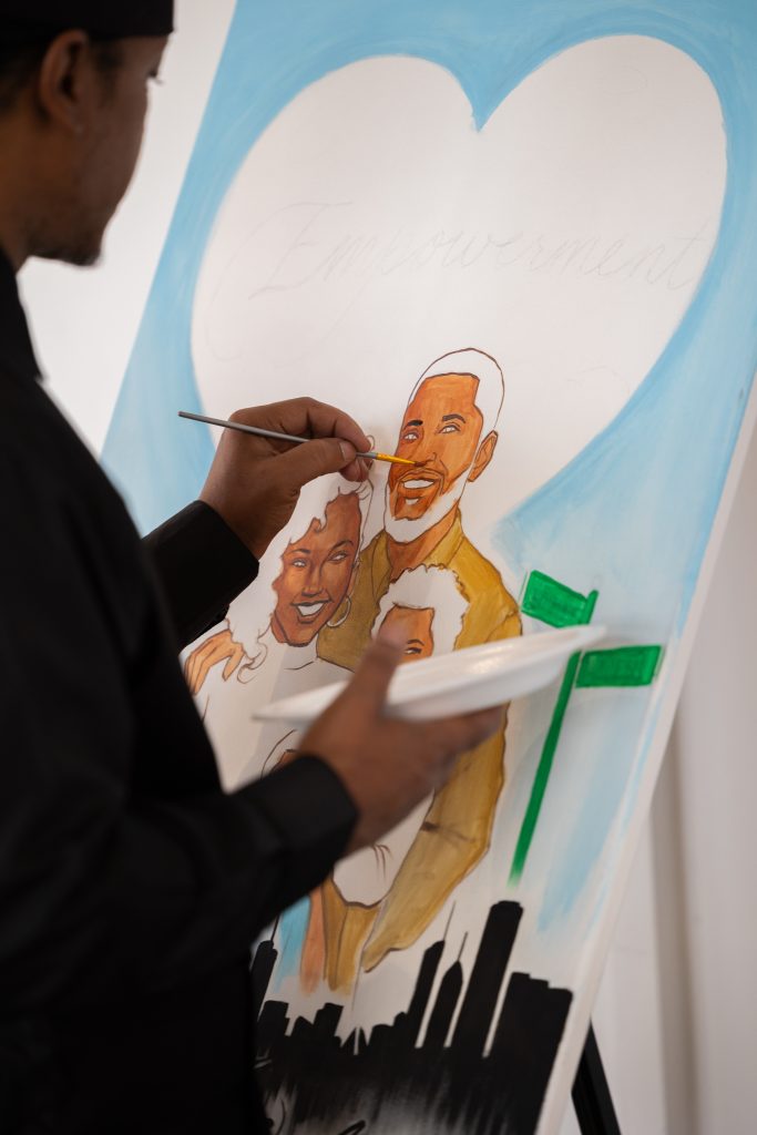 Our emcee, Shartia “Love” Jones brought warmth and rhythm, guiding the evening with compassion and charm. Chef Lashon Burrell of Cajun Cafe Chicago gave us some delicious bites while the crew from LVLS Creative captured it all, ensuring that the beauty of the night lived beyond the ballroom. Guests enjoyed a live painting display from Jerrold “Just Flo” Anderson followed by a chance to bid on it.